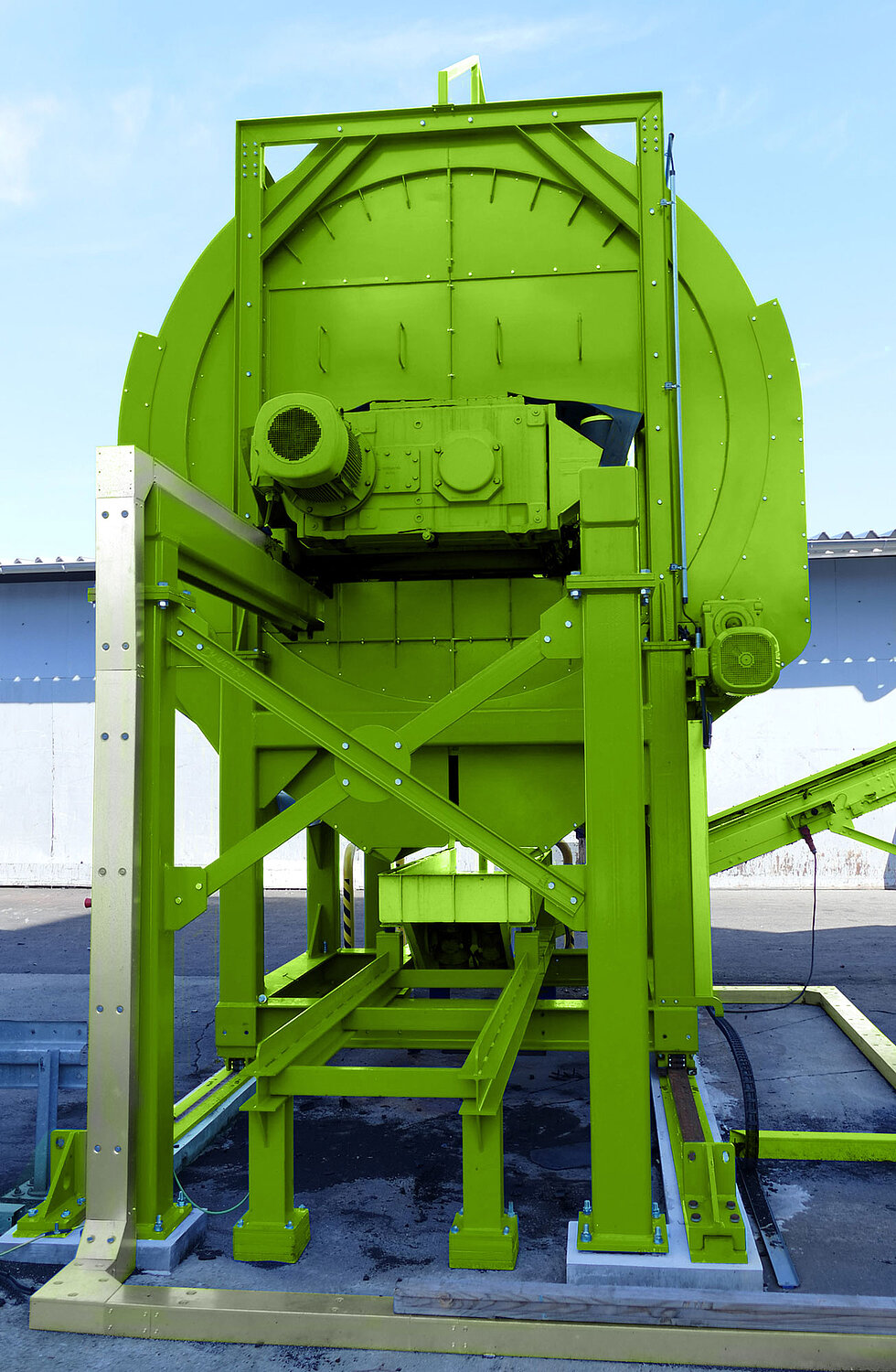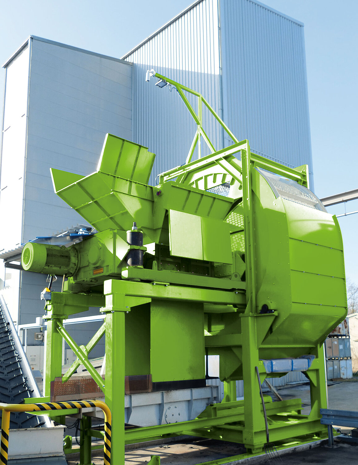 In order to meet growing requirements for compact and space-saving constructions, CHEMA Anlagen- und Apparatebau GmbH has developed a pre-shredding system with integrated drum screen. Conventional plants covering this type of function also requiring conveying technology, units for screening and a high complex control system, which needs pure floor space of around 200 m².