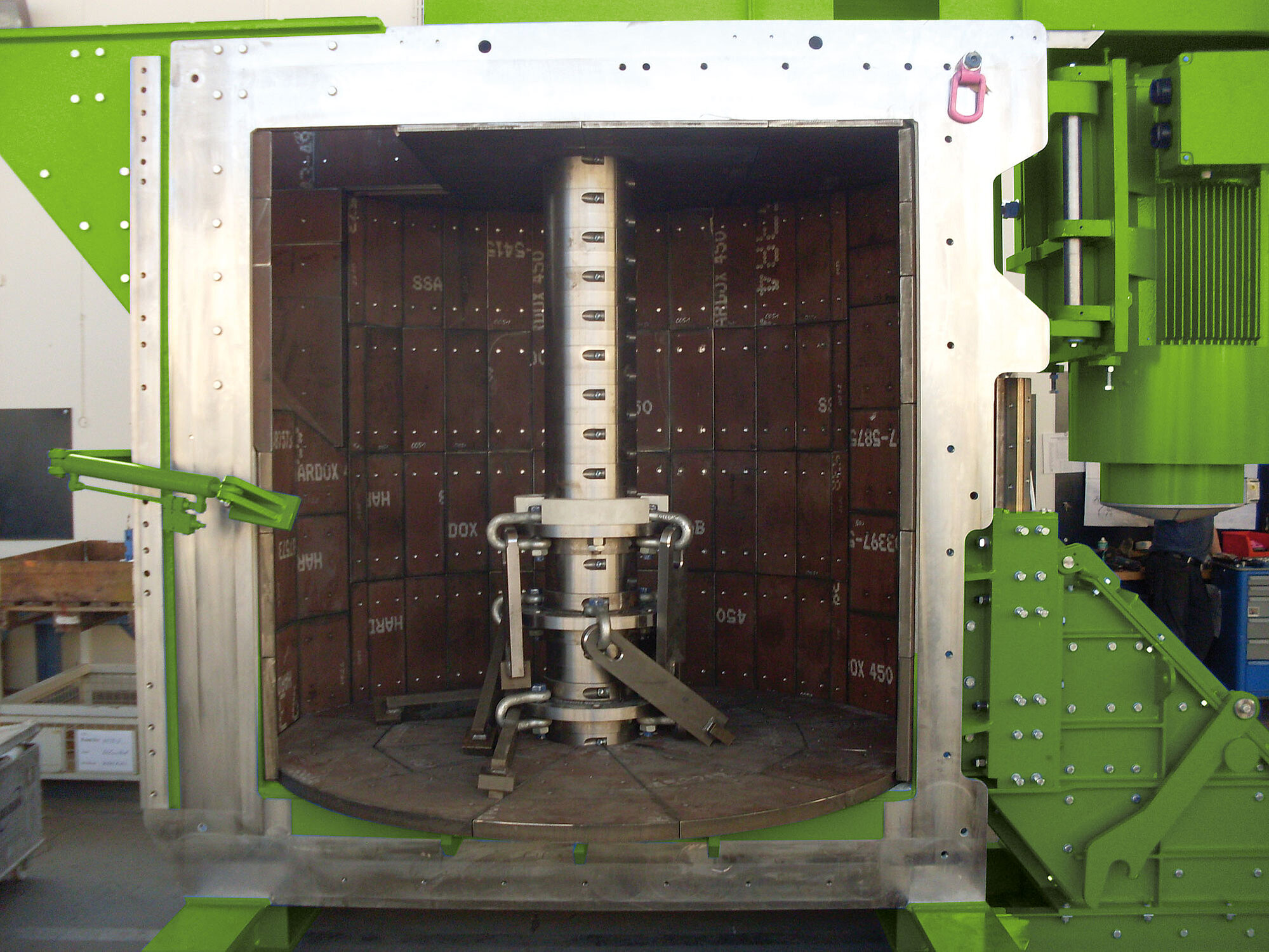 VB vertical crushers from CHEMA are comminution systems comprising a continuous impact shaft that is arranged in vertical position in the crusher chamber. The material is supplied through a feed hopper integrated into the upper housing part. Upon contact with the rapidly rotating crusher tools, the material is accelerated and comminuted by the high impact energy.